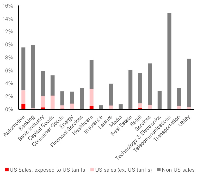 Figure 2: EUR HY - Breakdown by sector, sales exposures to US tariffs