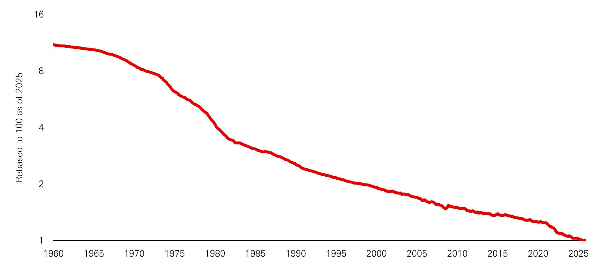 Another critical, and often underappreciated, driver of gold’s long-term performance is its relationship to the purchasing power of fiat currencies, particularly the US dollar. While gold is frequently analysed against nominal interest rates or inflation prints, its most consistent long-run relationship is with the cumulative erosion of real purchasing power.